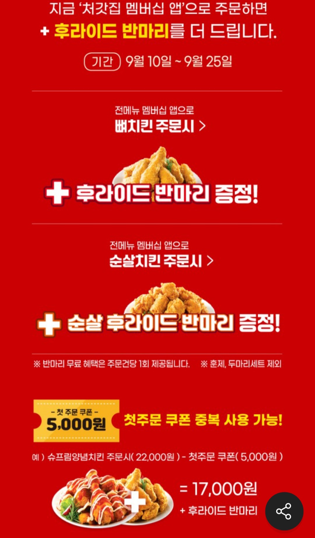 처갓집양념통닭에서 9월 25일까지 행사를 하더라구요
