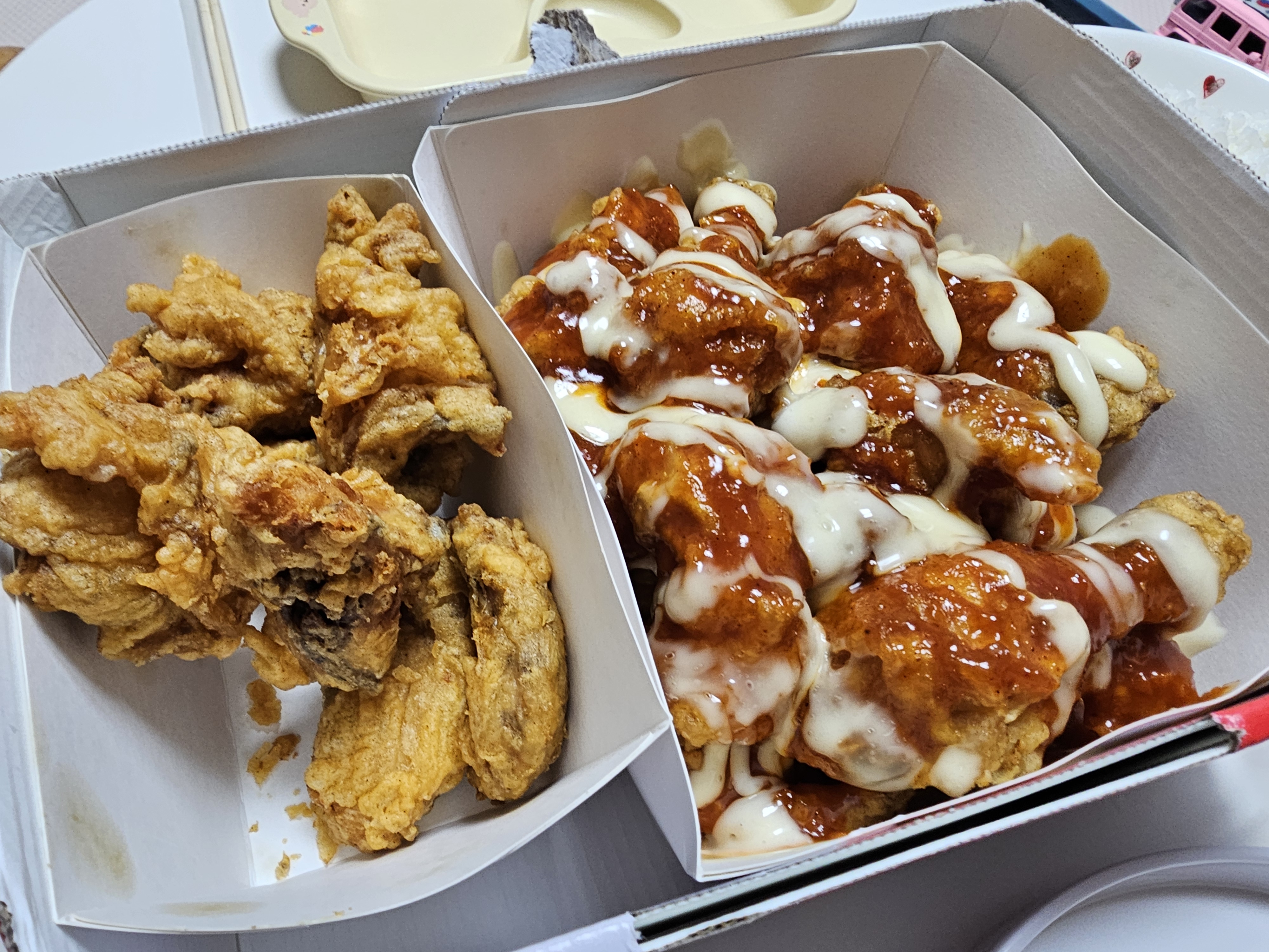 슈프림양념치킨 한마리 시키고 후라이드 반마리